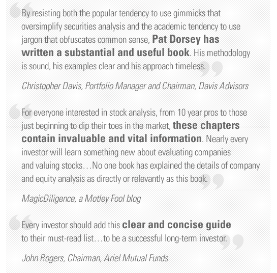 The Five Rules for Successful Stock Investing: Morn by Pat Dorsey . 4.7 out of 5 stars (49) $11.30 . The Ultimate Dividend Playbook: Income, Insig by Morningstar Inc. 4.3 out of 5 stars (19) $16.38 . The Big Secret for the Small Investor: A New R by Joel Greenblatt . ... Retrieve Content
